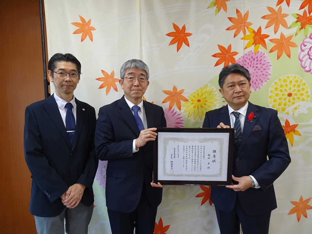 ・鍛治恭介委員長、大野秀棋副委員長から村山 卓氏に推薦状をお渡ししました。